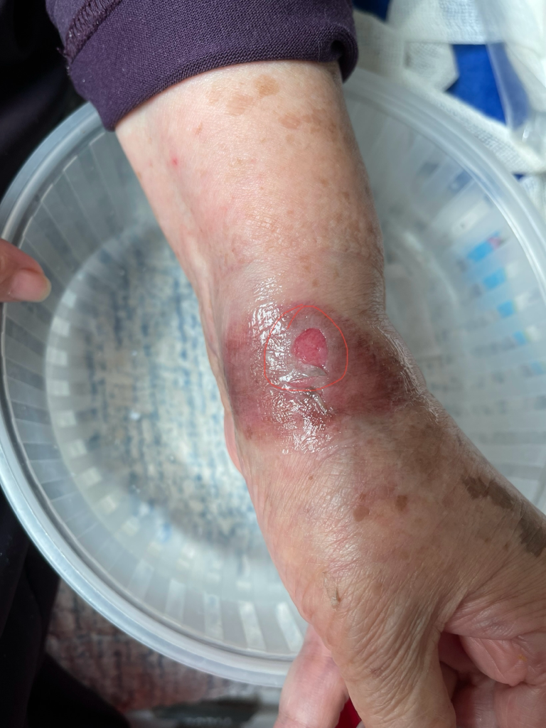 일요일이라 오늘은 집에서 멸균식염수로 닦아내고 연고 후 폼 붙여드리고있는중이에요
