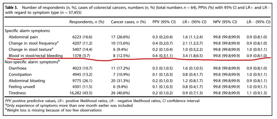 Predictive values of colorectal cancer alarm symptoms in the general population: a nationwide cohort study (British Journal of Cancer (2019) 120:595–600)