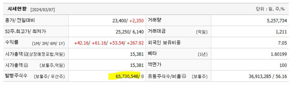 밑에 사진을 보면 발행주식수가 있고 유동주식수가 있는데 주식 지분율을 계산할때 발행주식수 총수(보통주만) 65,730,548 대비 제가 가지고 있는 주식수의 비율을 계산하면 되는 건가요? 예를 들어 아래 사진에 나온 종목의 주식 100,000주를 가지고 있으면 100,000/65,730,548=0.0015%가 제 주식 지분율이 되는 건가요?