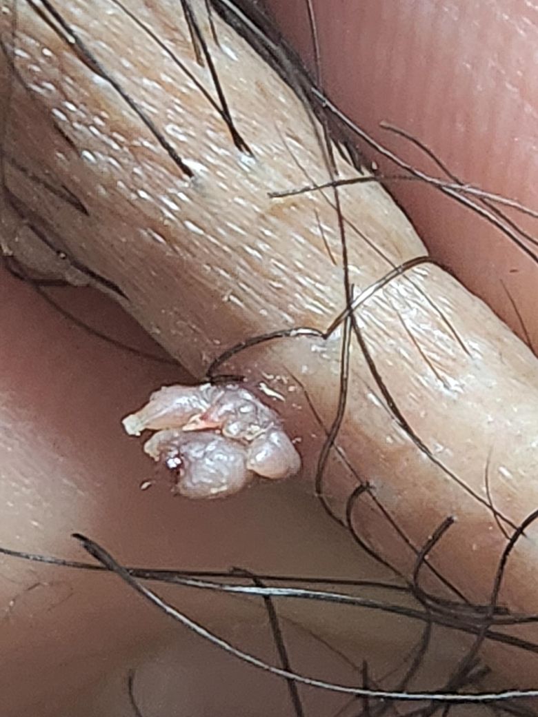 크기는 0.5센티정도되고 잡아당겼을때 일반 피부를 잡아당기는 고통보다 크게느껴집니다