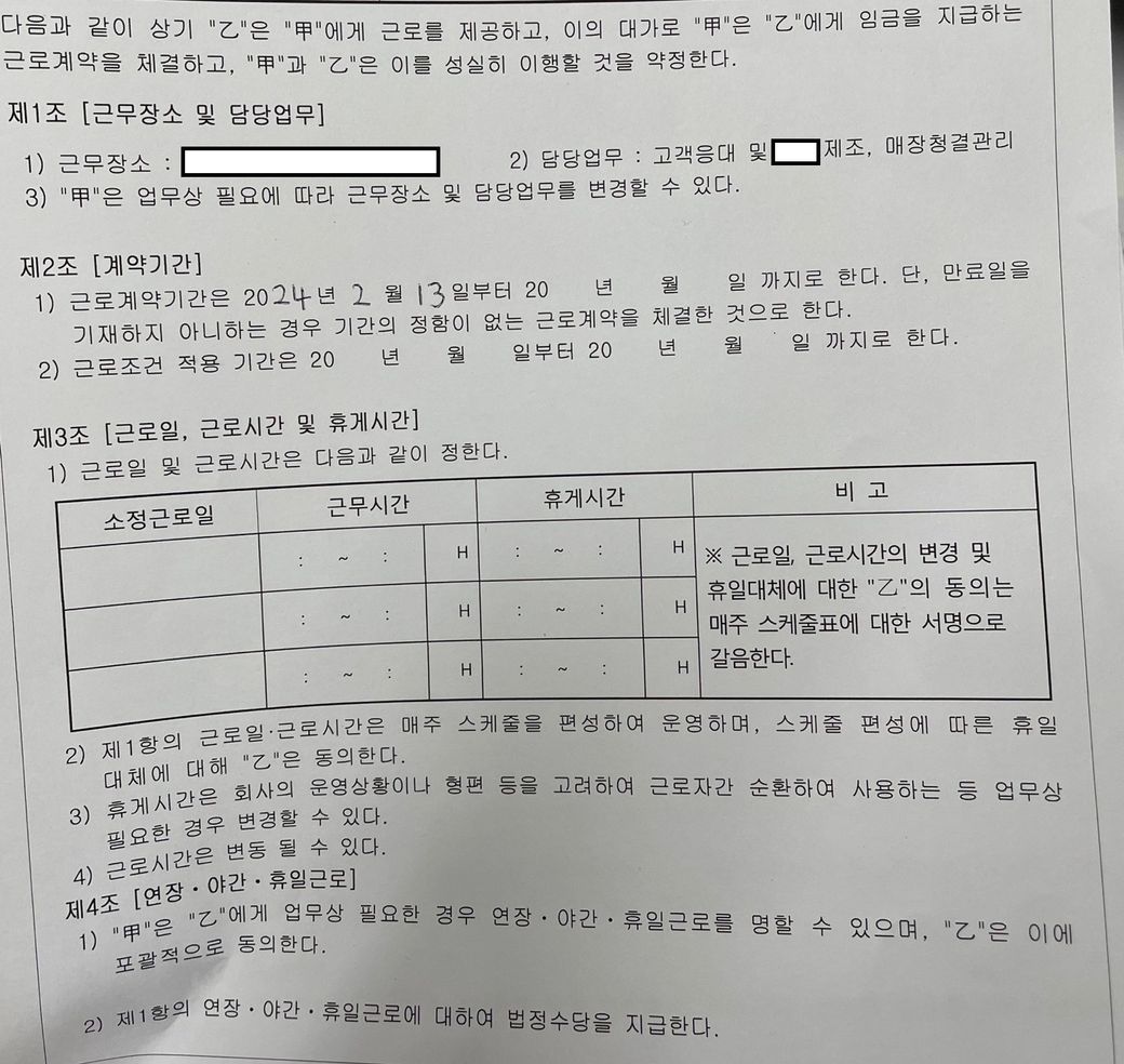 (추가로 해당 근로 계약서는 교부 받지 못했으며, 이 글을 작성한 계기는 현재 근로 계약서 보다 높은 시급을 받고 있지만