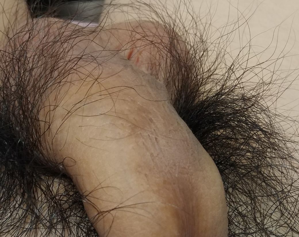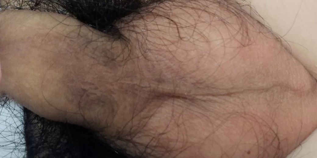 음경과 고환이 맞닿는 부분쪽인 음경 밑에가 확연히 주변의 피부색과 차이가 나고, 패인것처럼 보이는 구멍이 있습니다.
