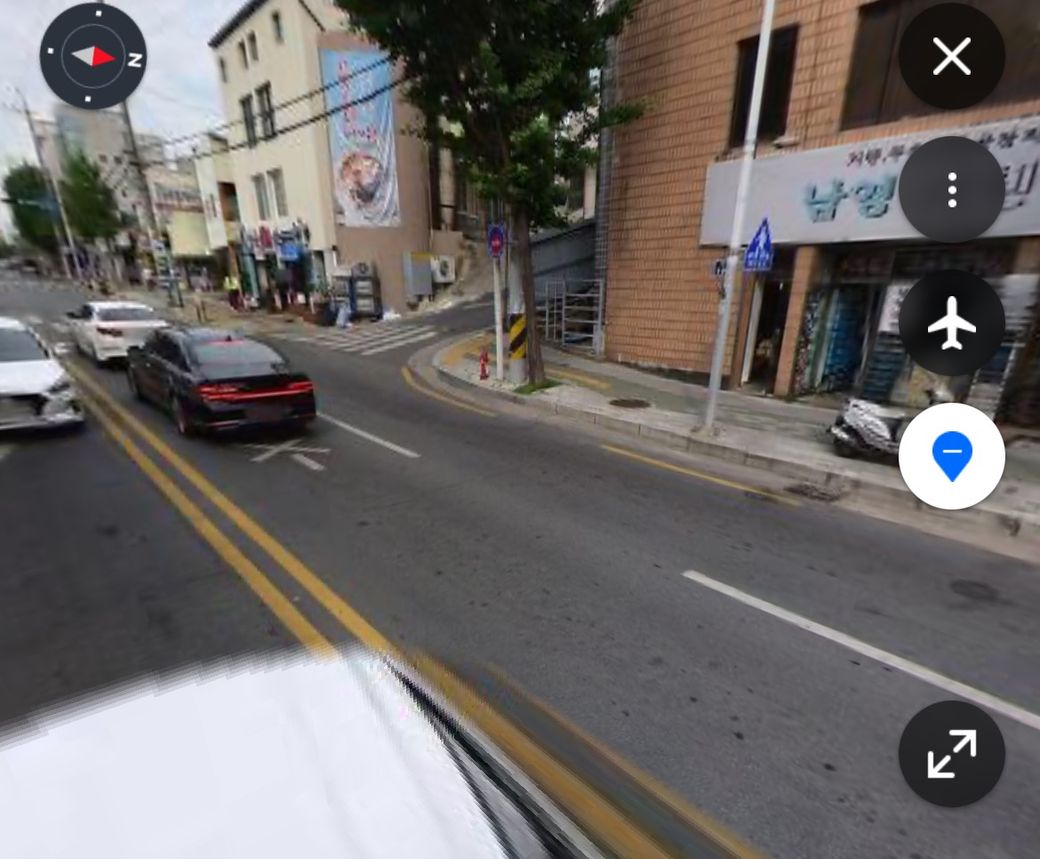 위와 같은 경우 직진을 해야 하면 실선 전에 차선변경이 가능한 차로에서 미리 차선을 변경해야 할 것입니다.