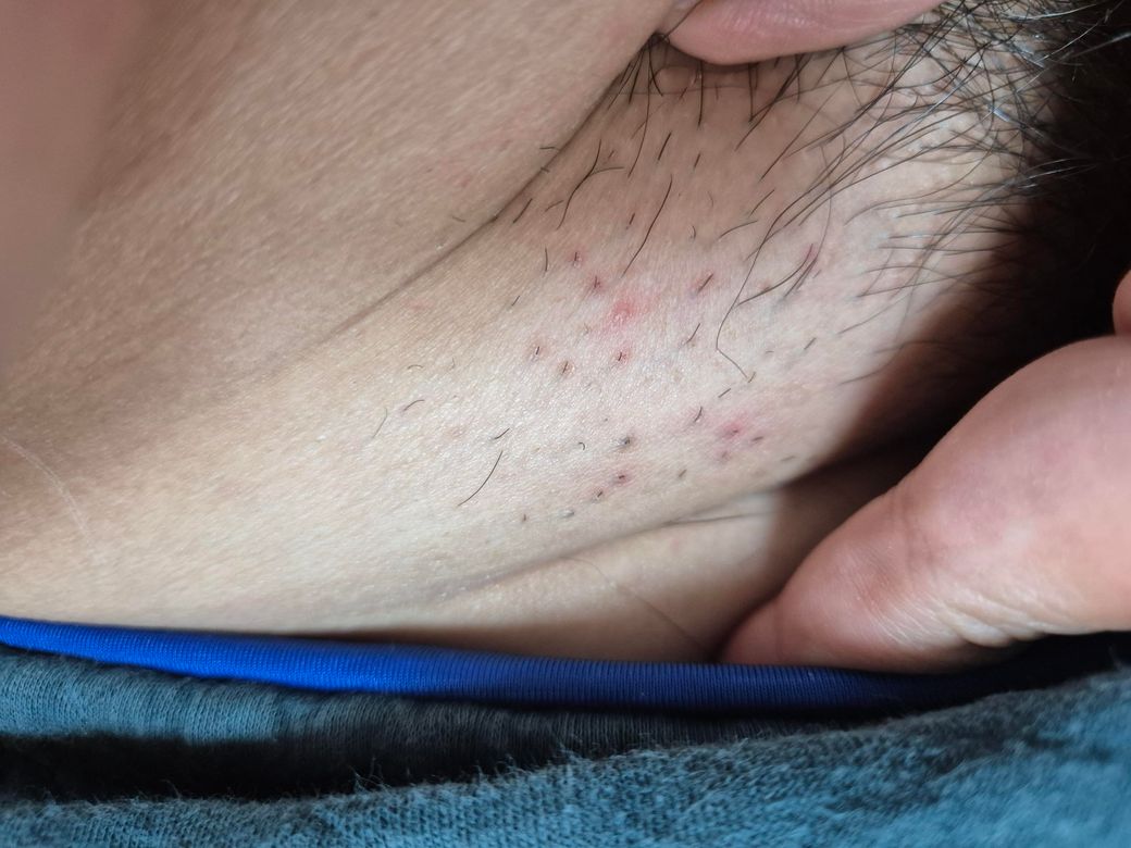 얼마전에 관계한 사람의 음모 부위에 흉터다많아서 불안했는데 가려운느낌이 나서혹시나 해서 자세히 보려고 면도를좀 하긴했습니다. 다제거한건 아니고 적당히요 근데 이렇게 빨갛게 올라온게 보여서 이런 병변이 옴이나 사면발이에 의한 것일 가능성이있나요?