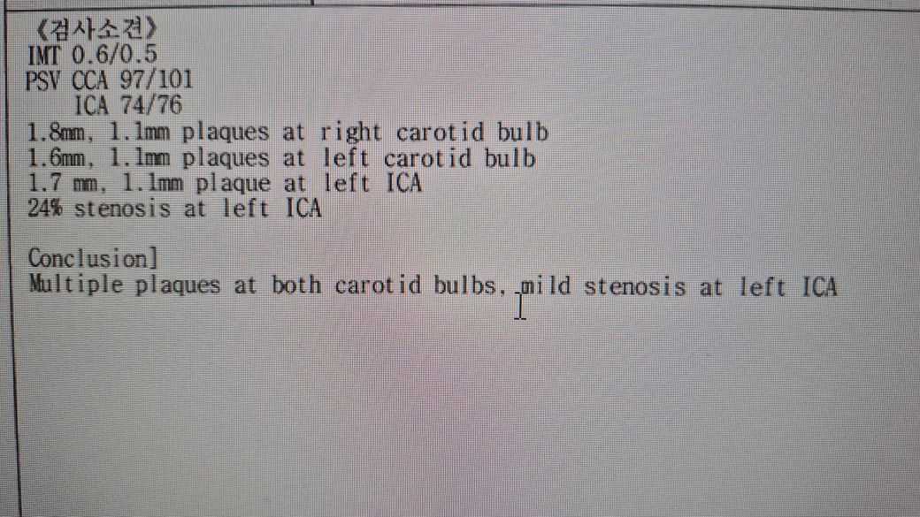 혈관두께 와 플라크 등 왼쪽에 경미한 막힘등인것같은데요