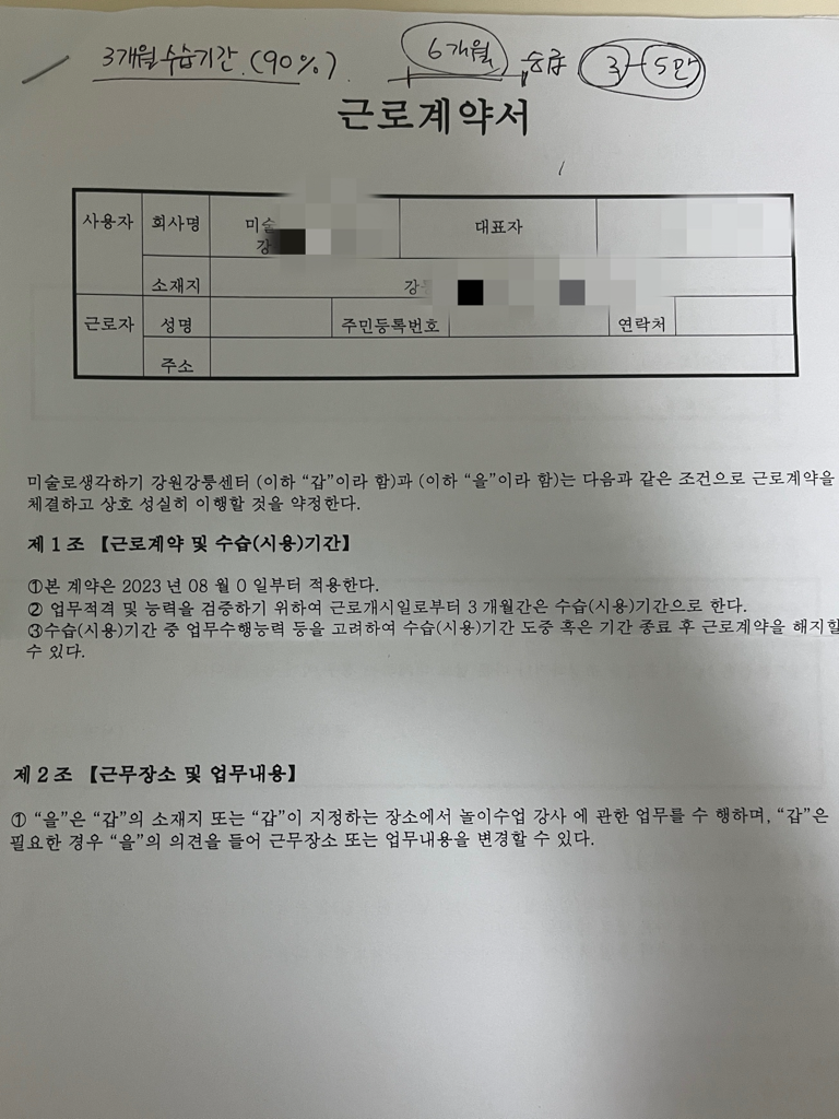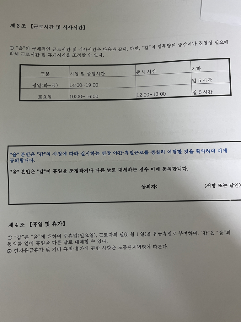 ✔︎ 확인차 근로계약서 사본을 받았으나 서명 안 함