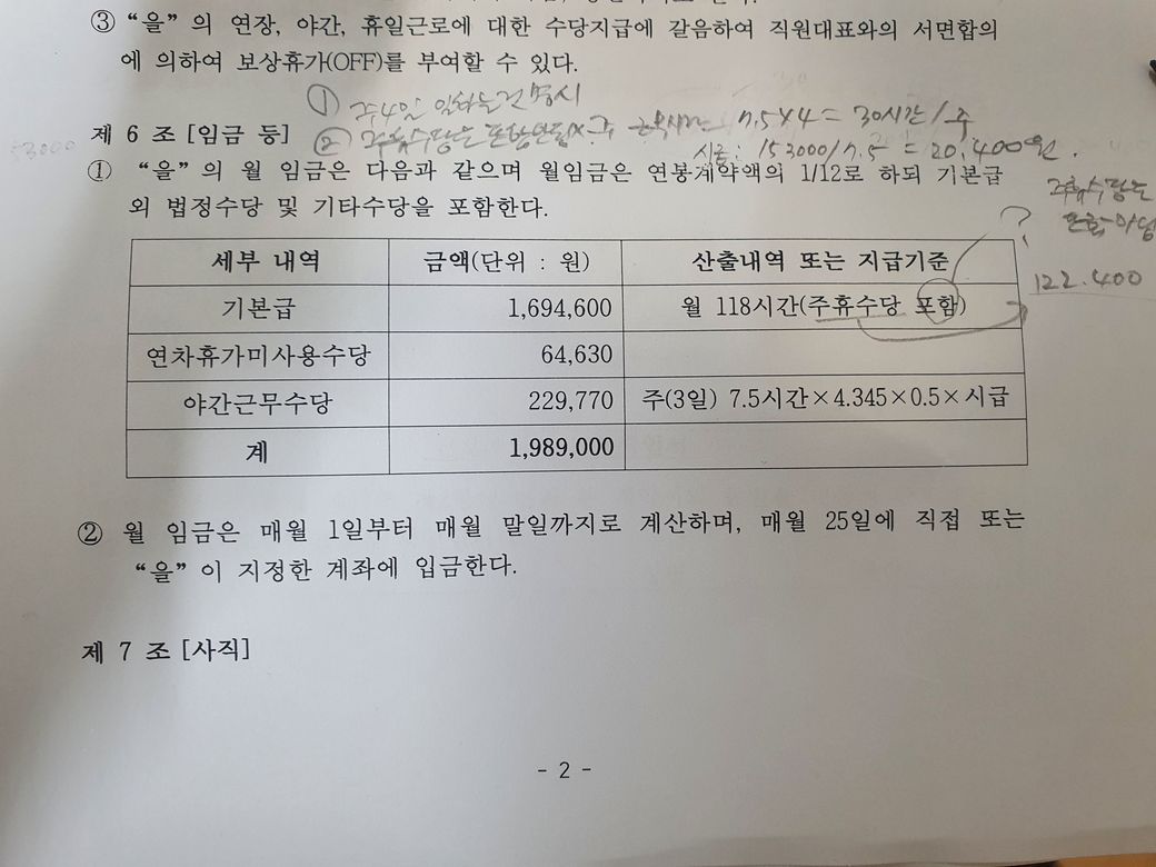 보시다시피 첨부한 이전 계약서에는 있지도 않은 야근수당이나 연차를 넣었다고해놔서요