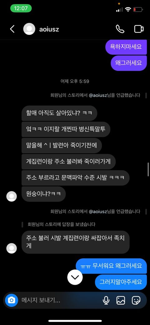 등등 다양한 욕설과 살해협박을 받았습니다.