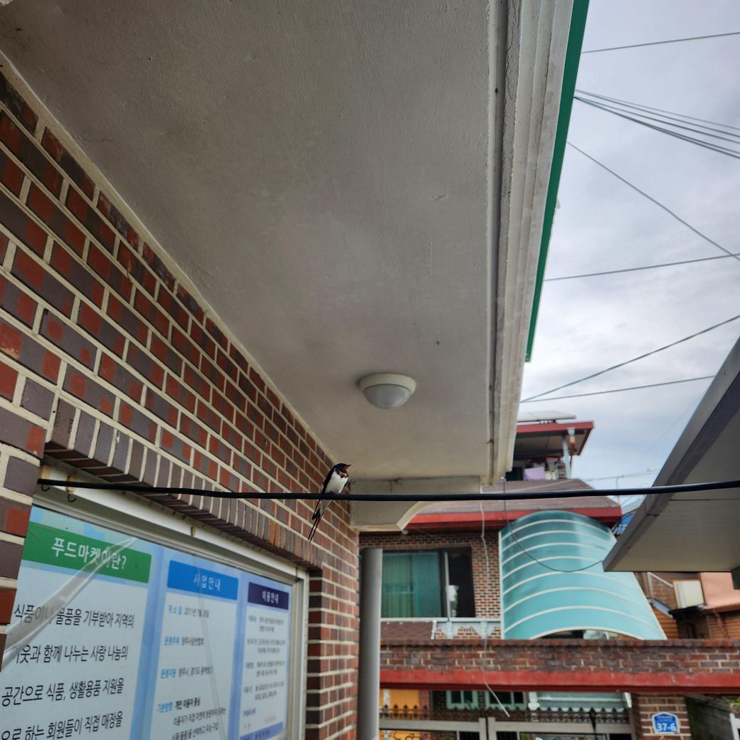 집 처마에 제비가 앉아있고 도망가지 않는 건 사람을 무서워하지 않거나 이미 익숙해졌기 때문일 거예요!!