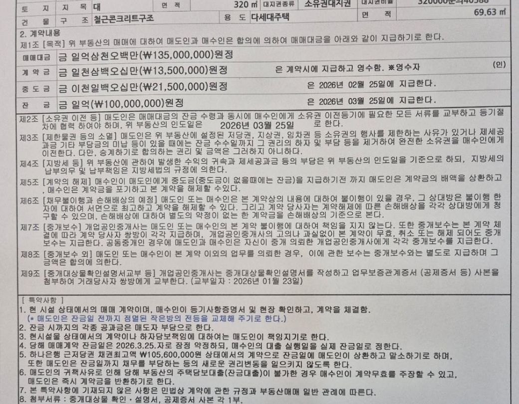 가계약금 후 다세대주택 매매 거래시 특약사항