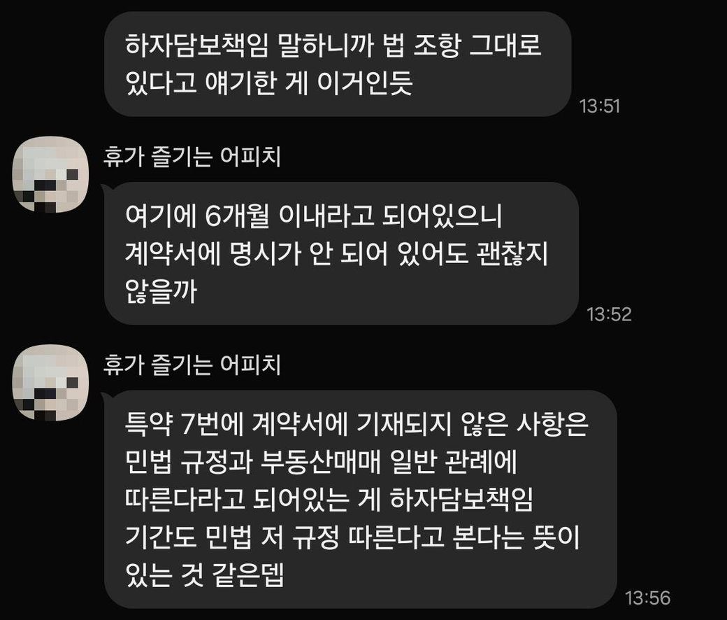 부동산 쪽에서도 이야기했듯 민법상 하자담보책임은 기본적으로 인정되지만, 소모품 여부를 두고 분쟁이 자주 발생하는 편입니다. 그러나 이번처럼 특약 1번에 전등 교체를 명시하고, 3번에 담보책임까지 확실하게 명확히 해두면, 나중에 전기 배선 등 추가 문제가 발견되더라도 매수인이 수리 요구나 비용 청구를 당당하게 할 수 있습니다.