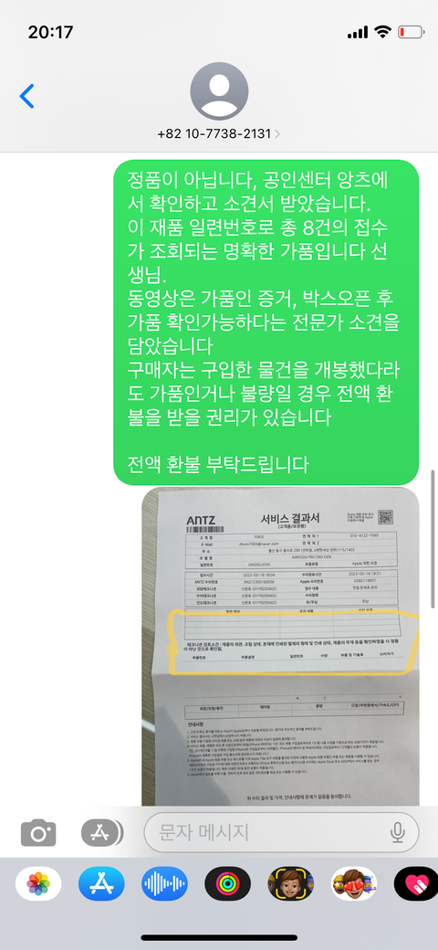 포장을 열어 제품을 확인해보니 어설픈 부분이 있어 그날 바로 애플공인센터에 가져가 문의한 결과 가품이였습니다.