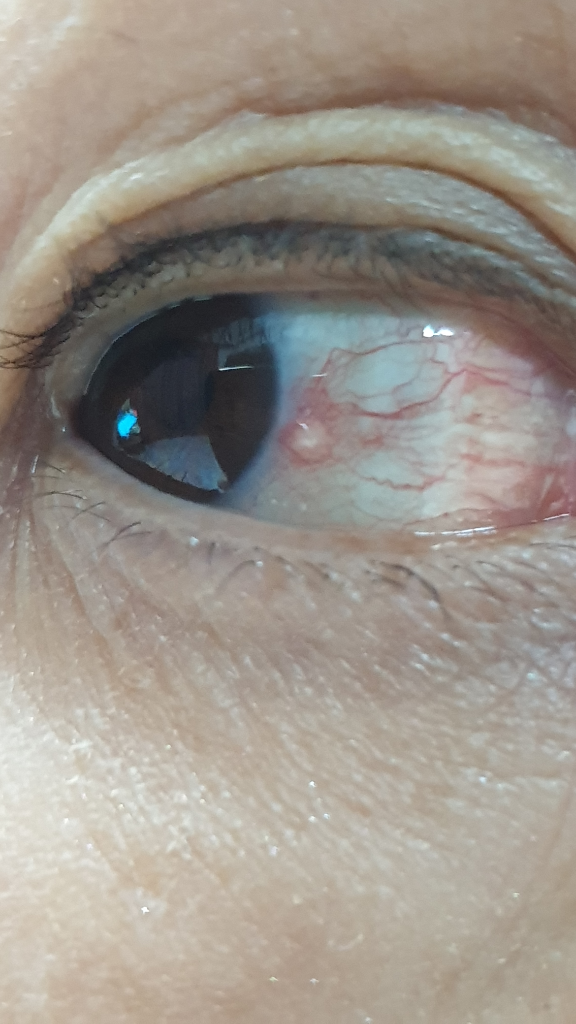 큰 병은 아닐 가능성이 높습니다. 결막 부종일 가능성도 있어보입니다.