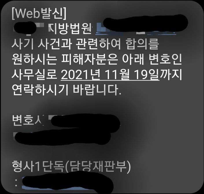 오늘 합의문자가왔는데 사기꾼한테온게아니라 법원? 에서온거같아요