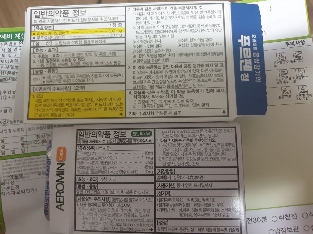 감기몸살이 심하게와서 약국에서 감기몸살약을 샀습니다
