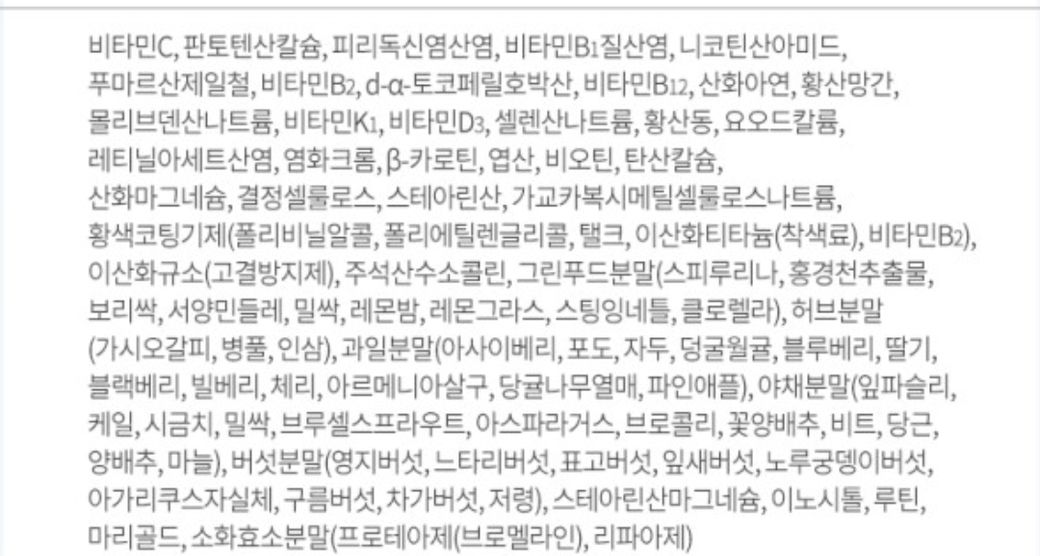 여기 중간쯤 부터는 부원료들도 기재되어 있습니다.