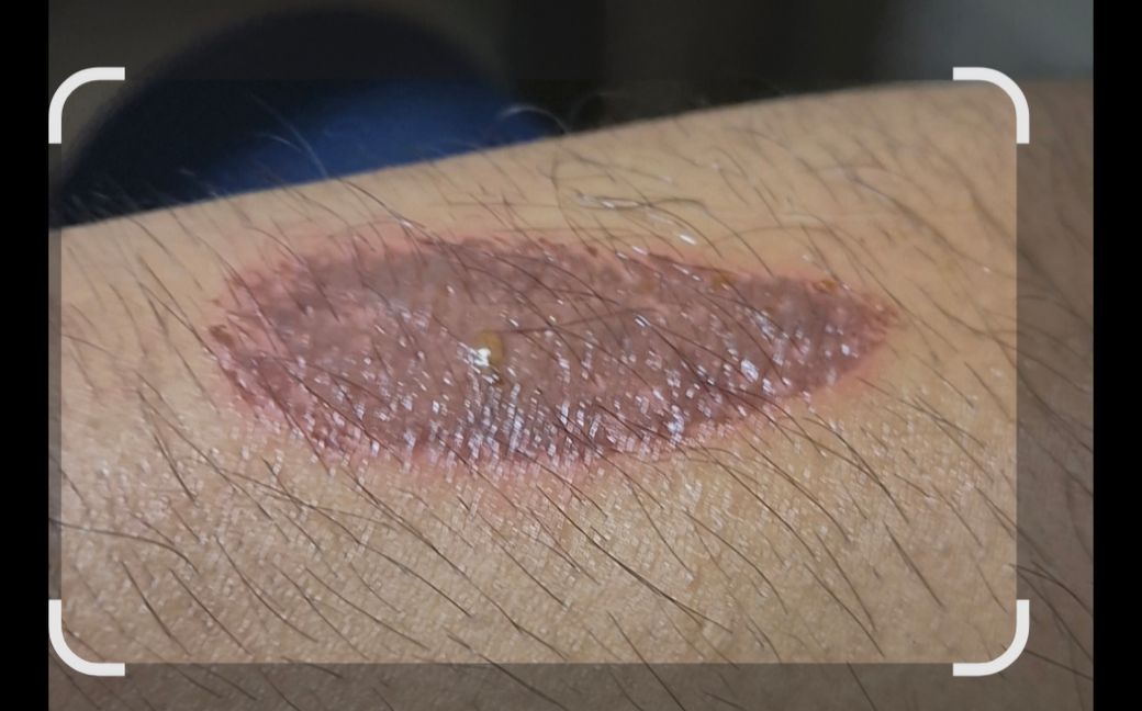 오른팔에 일하다가 데였는데 사진과 같이 됐습니다