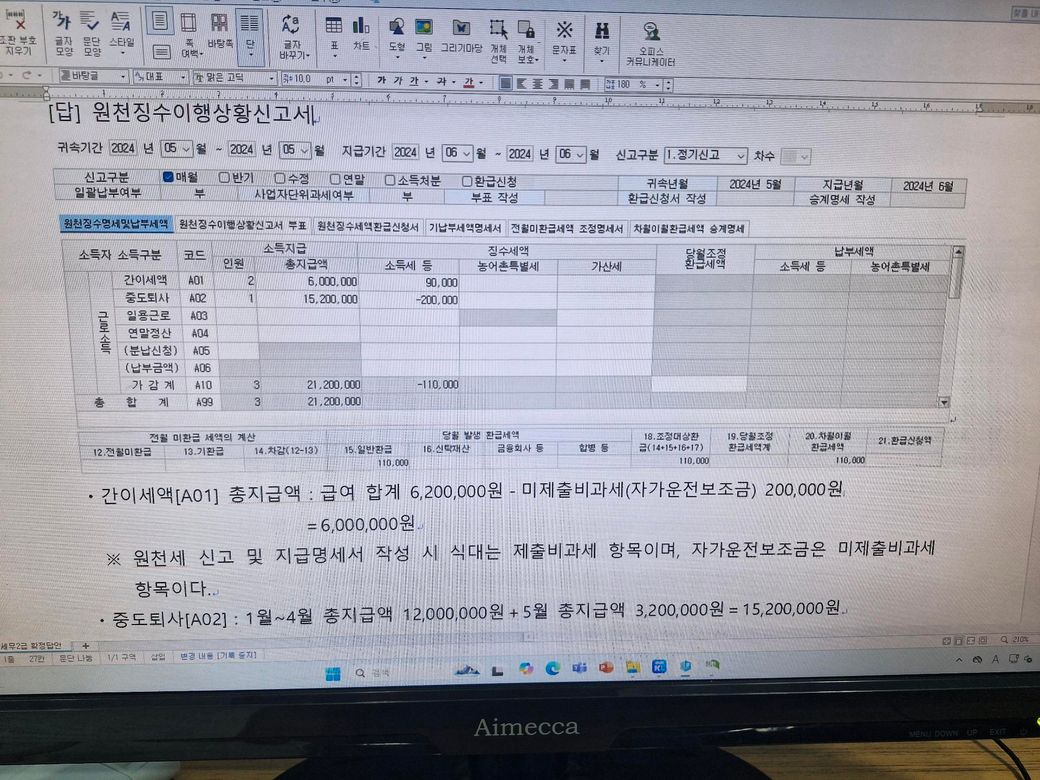 원천징수이행상황보고서 문제 방법 좀 알려주세요