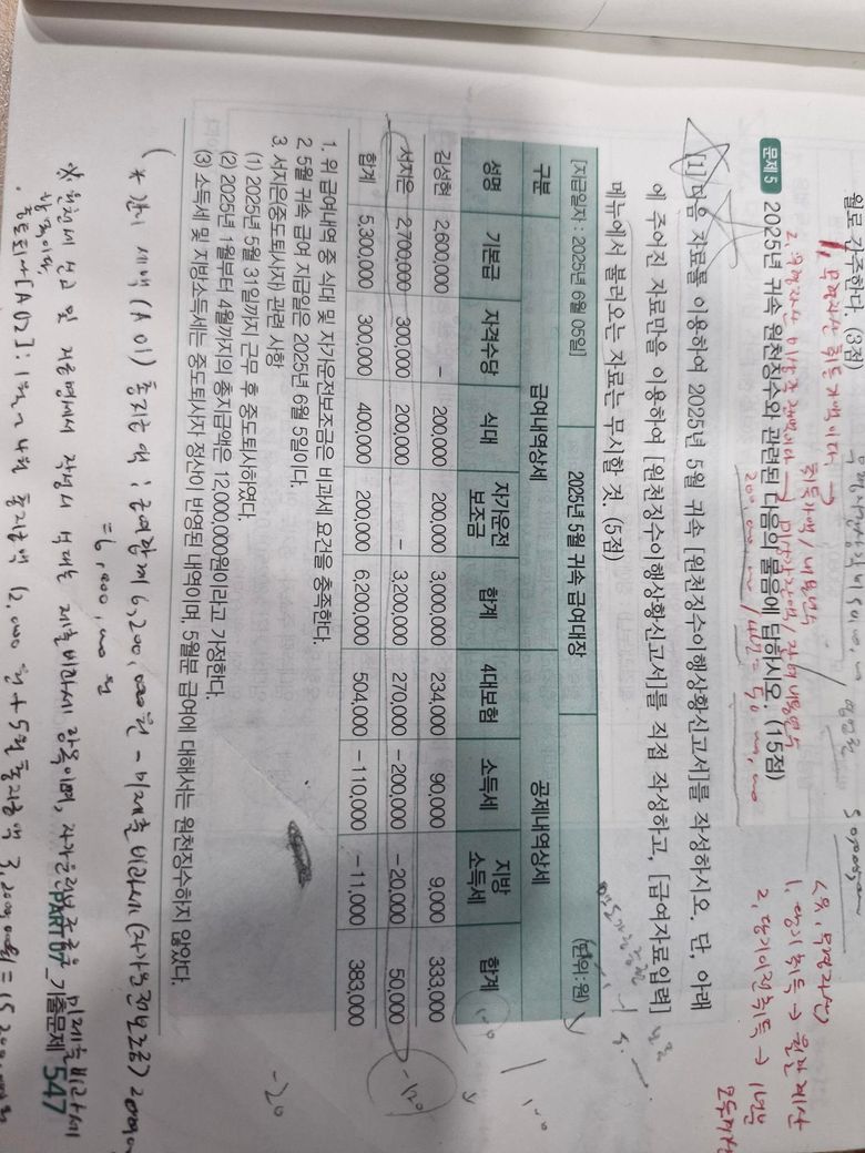 전산세무2급 교재인데 원천징수이행상황보고서 작성 푸는 방법을 모르겠어요