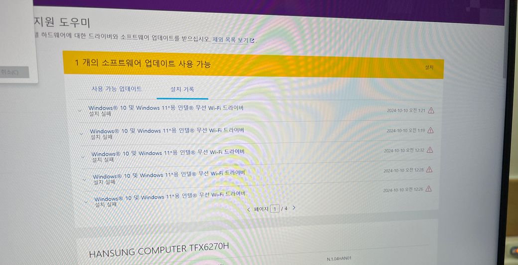 Intel wifi/한성노트북 TFX6270H 와이파이가 안떠요ㅠ 도와주세요