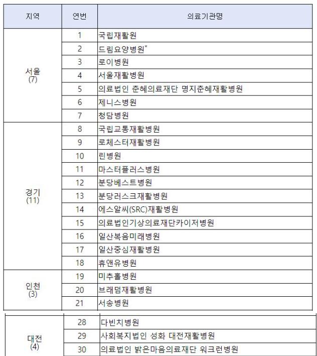 아래는 회복기 재활병원 리스트입니다.