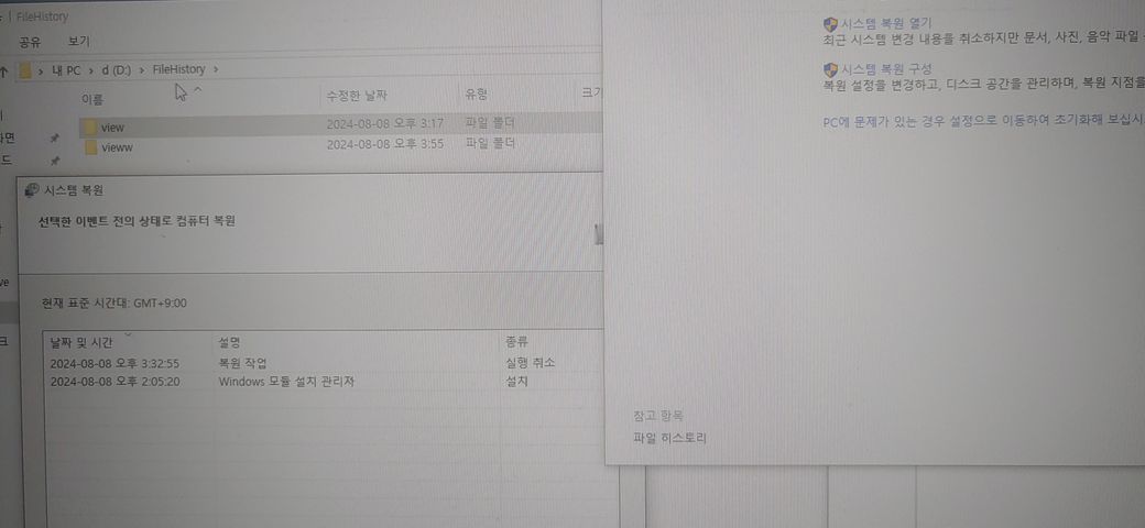 파일 히스토리 D드라이브에 남기고 초기화를 시켰고,