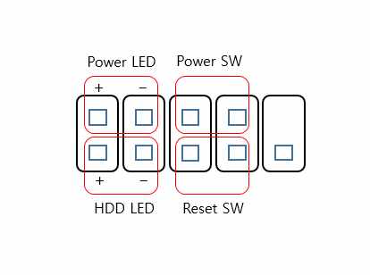 적힌 그대로 꽂으시면 됩니다. power led 납작한 애들은 메인보드에 pwr led 에 + - 순서대로 꽂으시면 됩니다. 그것 윗줄에 꽂고 밑에는 hdd led 납작한것 꽂으시면 됩니다.