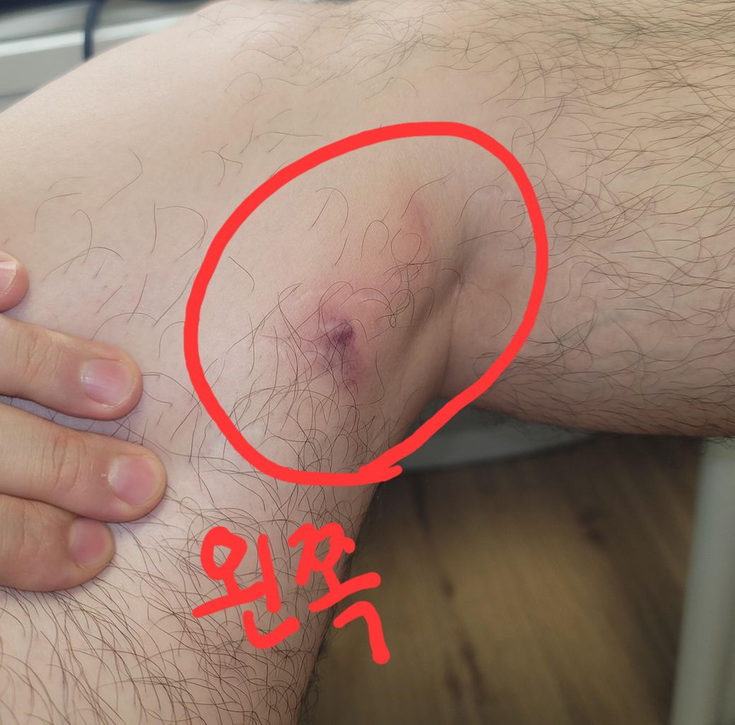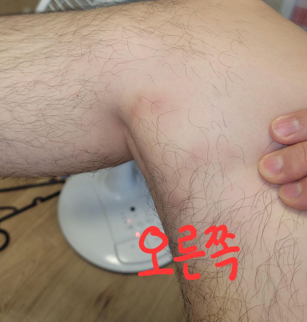 며칠 전 운동 끝나고 샤워를 하다가 왼쪽 무릎 뒤쪽 인대 주변의 지방층이 두꺼운 것을 발견했고 덩어리 같은 것들도 만져지더라구요.