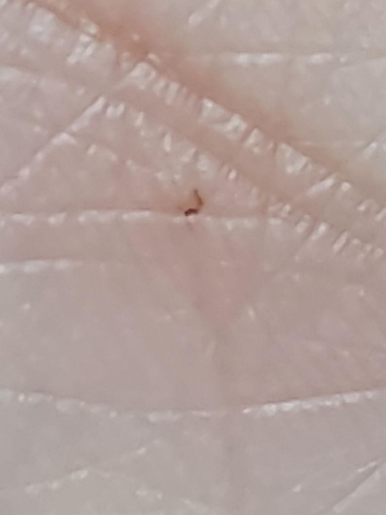 올해 1월, 갑자기 손바닥에 1mm 안되는 크기로 작은 검은 점이 났어요. 현재는 크기가 조금 더 큰 상태입니다. 통증이나 간지러움은 없구요.