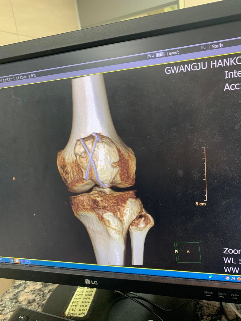 작년 6월초 슬개골 분쇄골절로 핀과 와이어를박았습니다