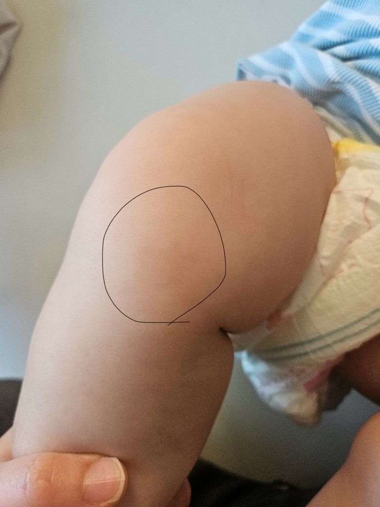 저희 7개월 둘째가 무릎쪽에 연하게 있고(사진)