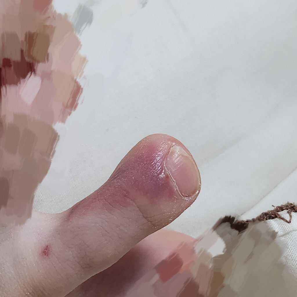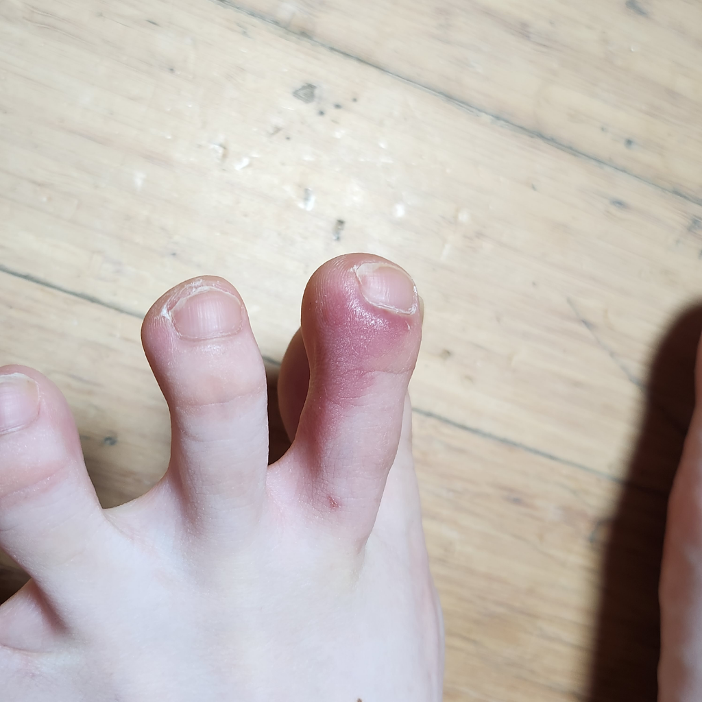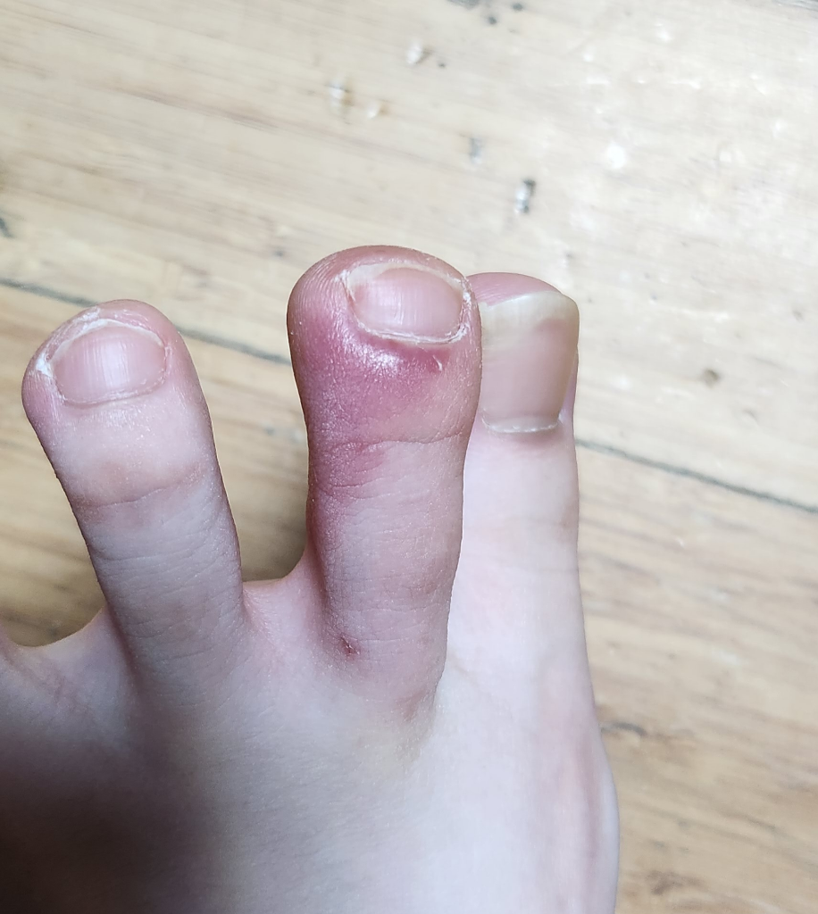 사진에 보이실지 모르겠는데 물린 발가락 1/2가 색이 변에 있어요 검정색으로ㅠㅠ...