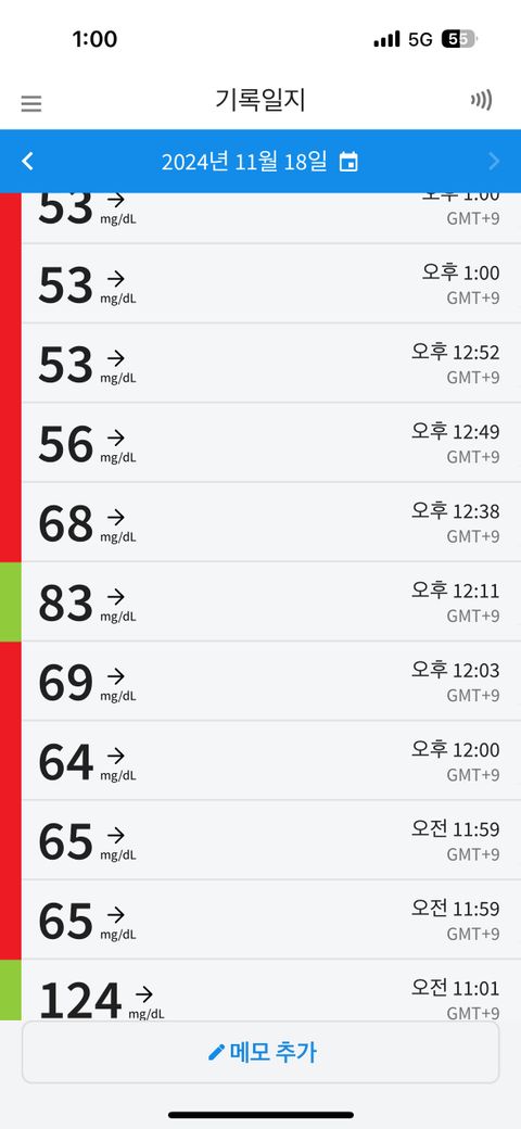 23세 여성입니다. 혈당관련 실험에 참여하여 오늘부터 리브레를 부착하고 있습니다. 식사 직후 136까지 올랐다가 약 3시간이 지난 지금 69-56-53 이렇게 점차 혈당이 낮아지고 있습니다. 레브레 앱에서 빨간색으로 저혈당이라고 뜨는데 정말 저혈당인가요?