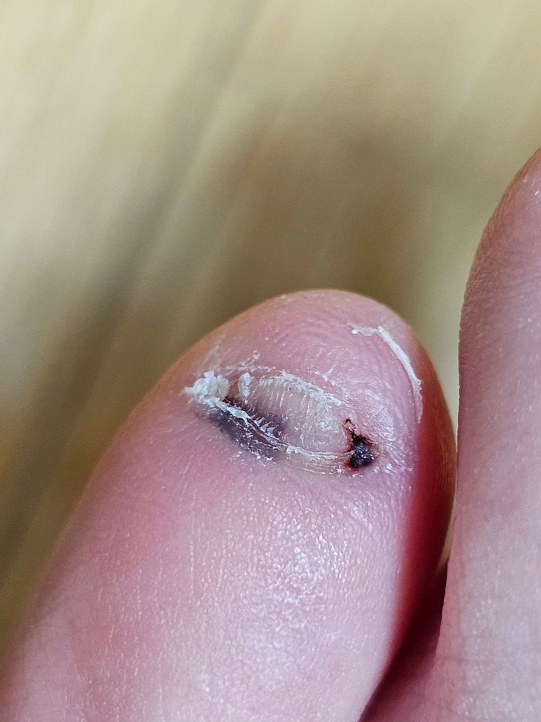5일?쯤 전부터 발톱 안쪽(뒤쪽)에 까만 게 보이더니, 지금은 조금 더 커졌어요. 발톱을 어디에 따로 찧은 기억은 없구요. (굳이 바뀐 걸 따지자면 샌들을 최근들어 좀 자주 신은 것 뿐입니다)