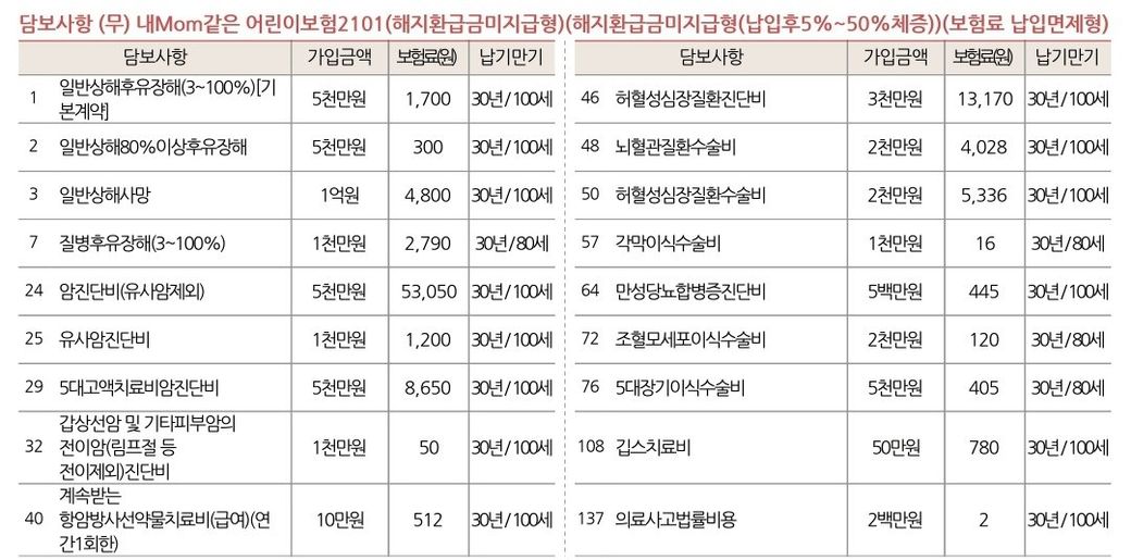 보험료가 부담되신다면 만기를 30년납 100세만기 또는 20년납 90세만기로 조정하시는 게 좋으실 것 같습니다.