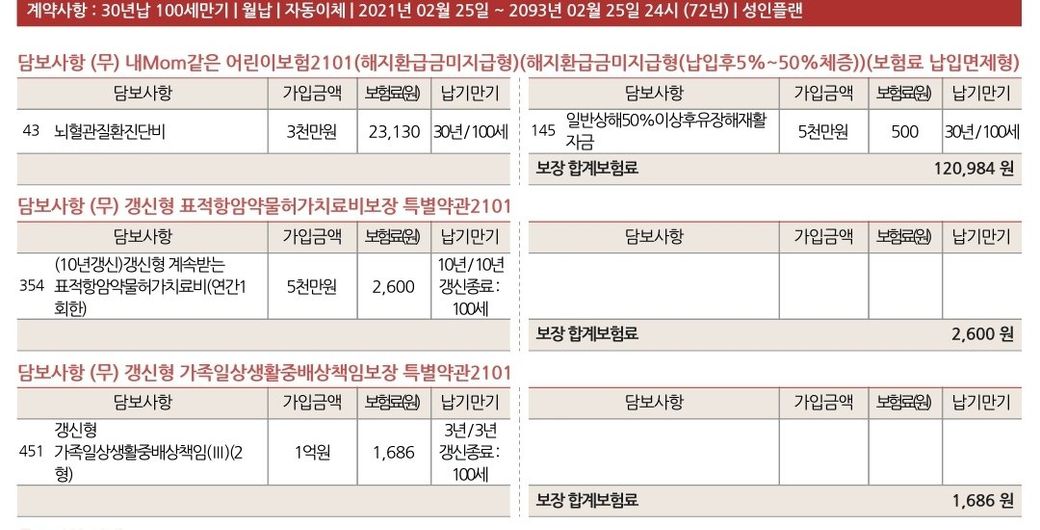 2월 25일에 어머니의 추천으로 어린이보험어 넣어습니다.