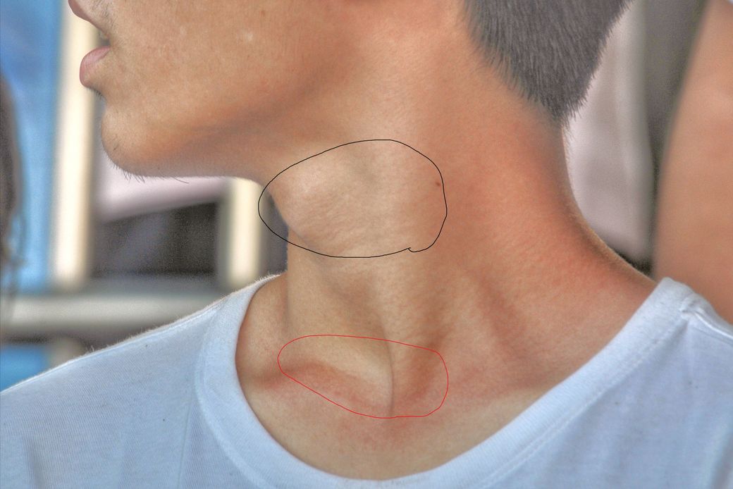 이번 통증은 거기보단 조금 더 윗쪽의 성대가 있는 부분이 아픕니다.