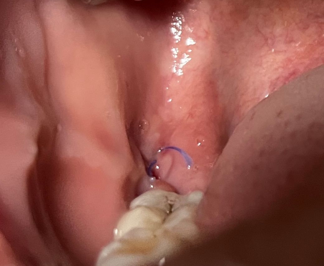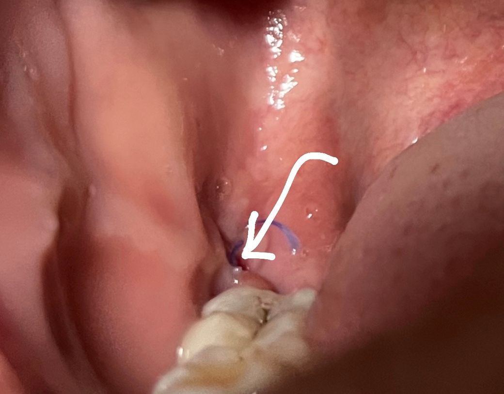 지난주 금요일날 매복사랑니 발치후 아직 실밥제거를 안한 상태인데 오른쪽 볼살이 그림처럼 튀어나와있는걸 감지했습니다. 저기에 계속 이물질이 잘껴서 양치할때 살펴보니 튀어나온 볼살이 저 부분을 계속 덮고있어서 구멍같이 무언가 낄수있게 되었습니다. 이게 실밥 풀린 상태인건가요? 치과 한번 더 가보는게 좋겠죠?
