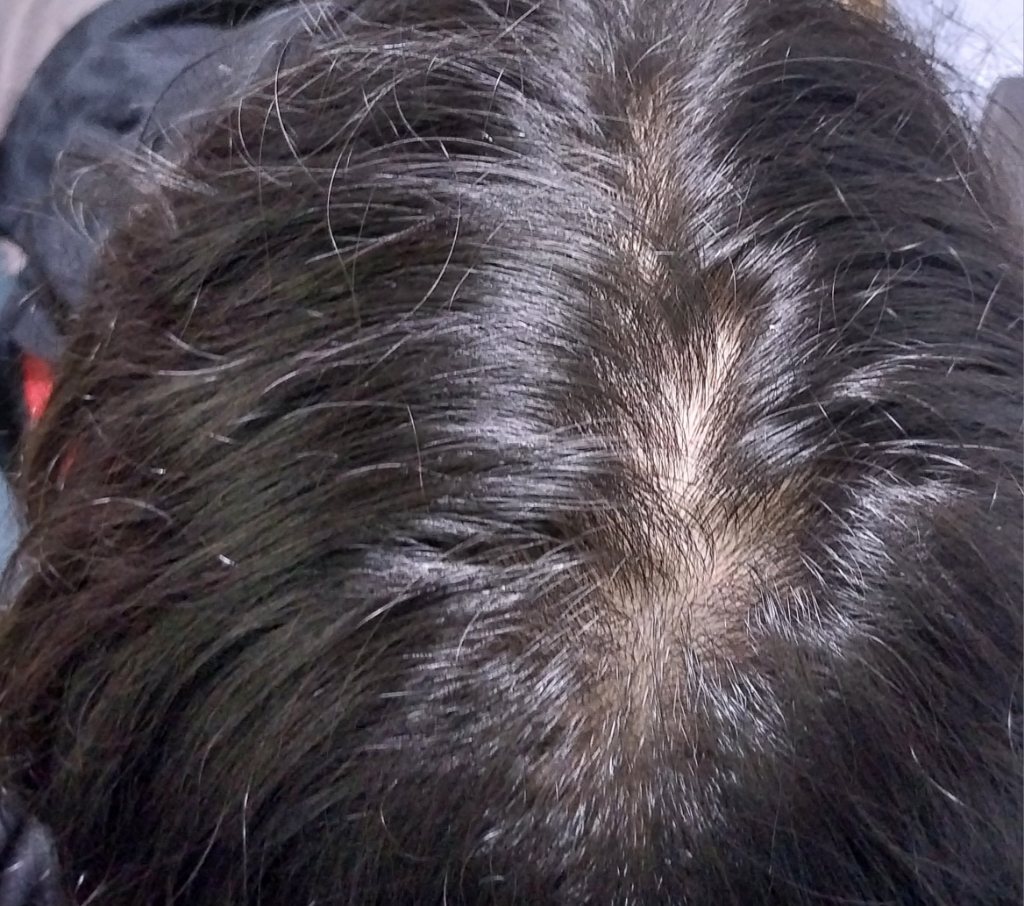 현재 많이 진행된 것으로 판단되지는 않습니다. 모발이 가늘어지고 있는것은 탈모의 시작 증상일수 있습니다.