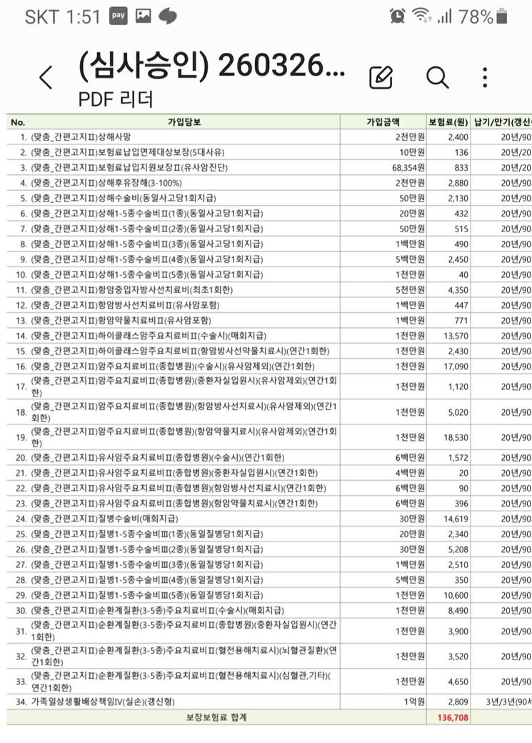 심혈관1천 총 13.8보험내고 있는데