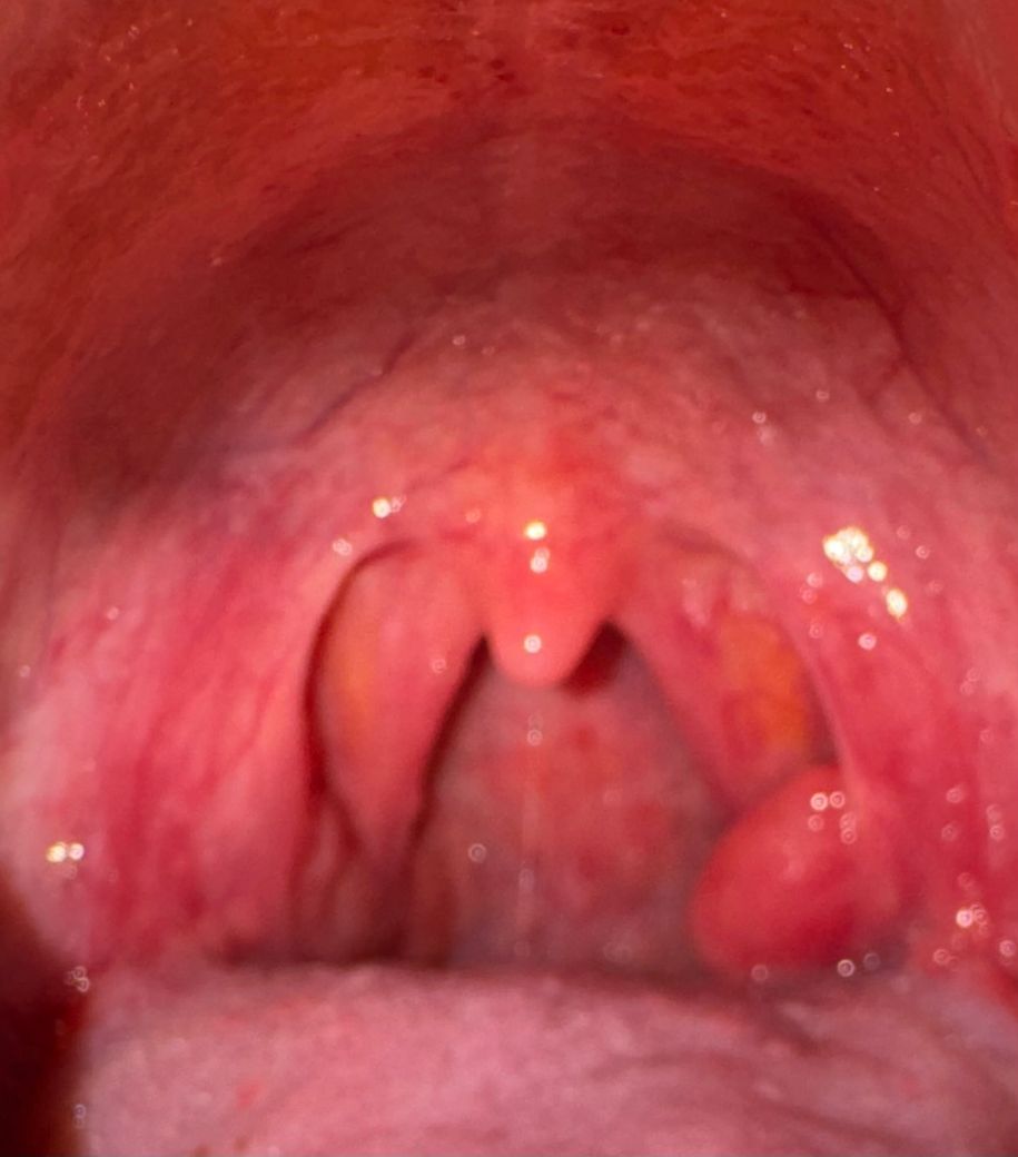 사진상 좌측 편도가 우측보다 뚜렷하게 커 보입니다. 통증, 발열, 삼킴통증이 없다면 급성 세균성 편도염 가능성은 낮아 보이지만, 한쪽 편도만 지속적으로 커진 경우는 단순 생리적 차이 외에 만성 편도비대, 반복된 염증 후 비대, 편도 결석, 드물게는 종양성 병변까지 감별이 필요합니다. 특히 이전에는 대칭이었는데 최근 눈에 띄게 커졌다면 그냥 두고 보기보다는 이비인후과 진료를 권합니다. 급하지는 않지만 1~2주 내 진료를 받아 육안 검사와 필요 시 내시경으로 확인하는 것이 안전한 판단입니다. 통증, 열, 출혈, 목 이물감, 귀로 뻗치는 통증, 크기 증가가 동반되면 지체하지 말고 바로 내원하시는 것이 좋습니다.