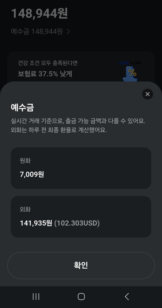 나머지 14만원정도의 금액은 외화 즉 달러로 가지고 있기 때문입니다