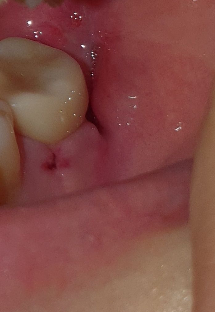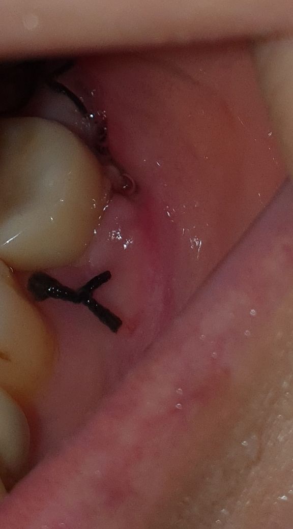 안녕하세요. 하악 매복사랑니를 발치한지 10일차입니다. 현재 실밥은 풀었고, 당시 사랑니포함 앞치아의 잇몸옆부분까지 봉합을 했었습니다. 실밥 푸른 후, 사랑니 앞치아에 실밥 풀은 잇몸경계선 부분이 v 자로 살짝 파여있어?서요.