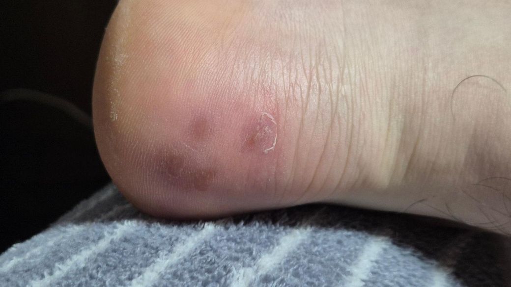 시간이 지나며 서서히 좋아질 것으로 보이나 발뒤꿈치와 마찰에 주의하시기 바랍니다.