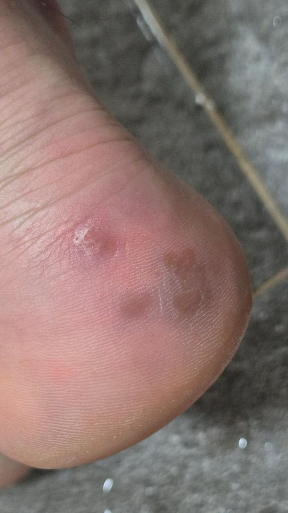 올려주신 사진으로 미루어 신발과 마찰로 인해 생긴 병변의 가능성이 생각됩니다.