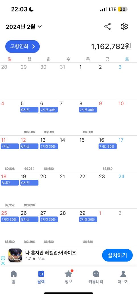 4월 4(마지막)주 41시간 근무 (27일 토요일 9.5시간)