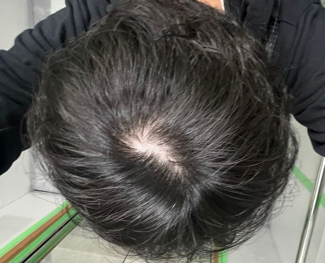 정수리 사진만 놓고 정확하게 탈모증 여부를 판단내리기는 어렵습니다만, 과거와 비교하였을 때 확실히 비어있는 부분이 증가한 것으로 보이긴 합니다. 가능성을 고려해보아야 하겠으며 정확한 판단은 피부과 또는 두피클리닉 등에서 진료 및 검진을 통하여 받으시는 것을 권고드립니다.
