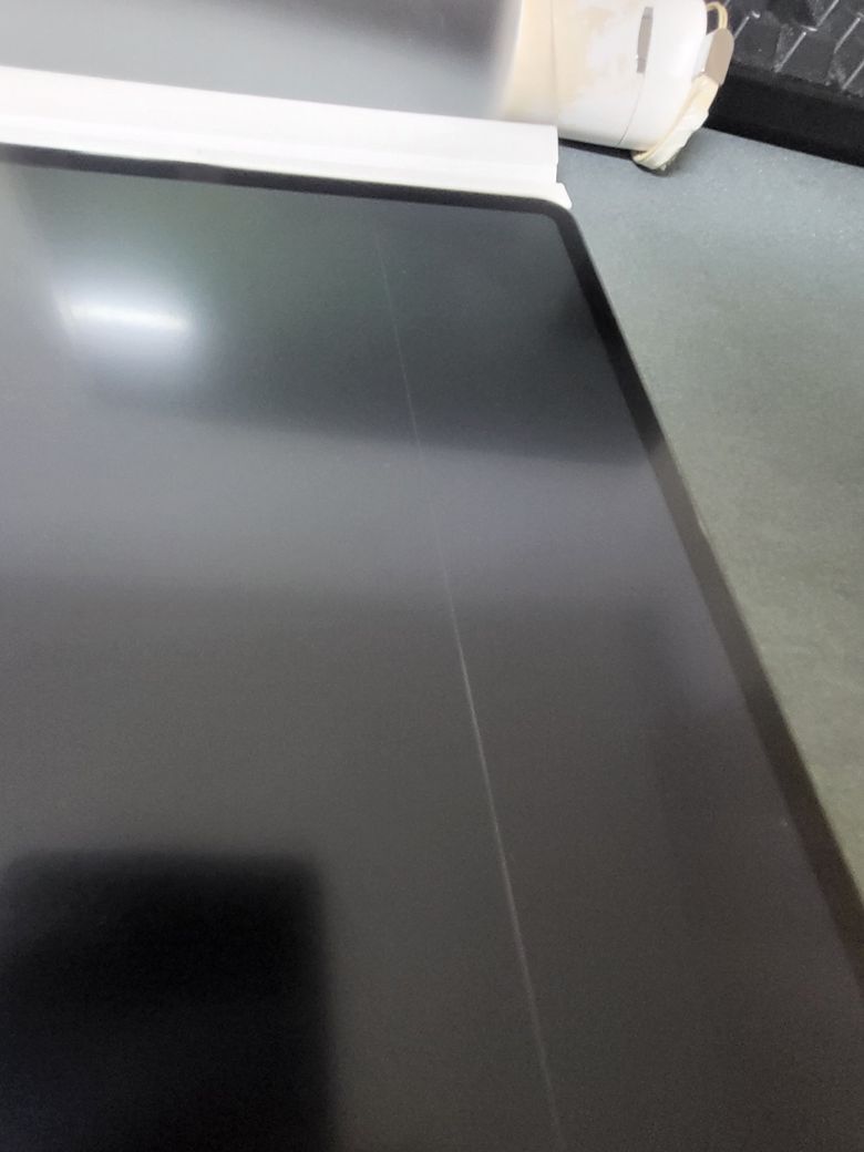 육안상으로 보기에는 필름에 금이 간것처럼 보입니다 아니면 혹시 태블릿액정에 미세한 금이 간거일수도 있겠네요 각도에따라 달리보이면 의심해볼만 한거 같습니다