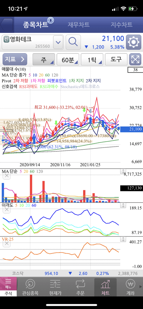 우선 회사 내용부터 보면 자동차 부품 회사로 이차전지 부품으로 엮이면서 좀 오른 부분이 있습니다. 작년 실적이 흑전은 했지만 미비하고 생각보다 시총도 큽니다. 시총이 1100억대라 저평가라고 하기도 힘드네요. 최근 계약 공시 떳을때가 기회였긴 하네요. 계약공시도 7년간 납품 공시라서 그리 큰 금액도 아닙니다. 일봉상 쌍바닥 후에 반등이 좀 나오면 26000원대가 저항이 크겠네요