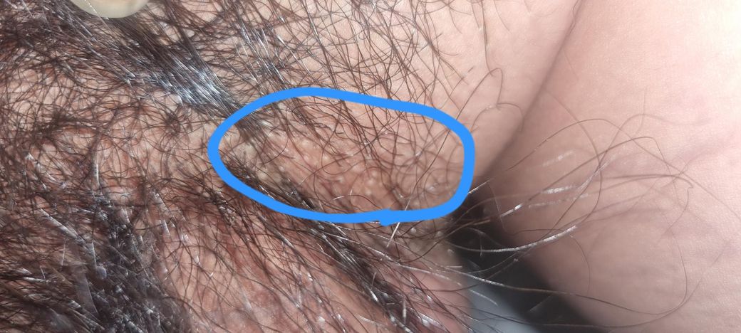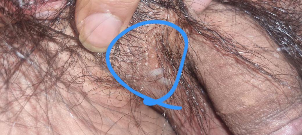 파란색으로 동그러미 친 부분 헤르페스 2형 수포로 볼 수 있나요 또 얼마전부터 털 나있는 부분이 따끔따끔 아프던데 제가 지금 전립선염을 앓고 있는데 그걸로 인한 신경통일 수 있나요